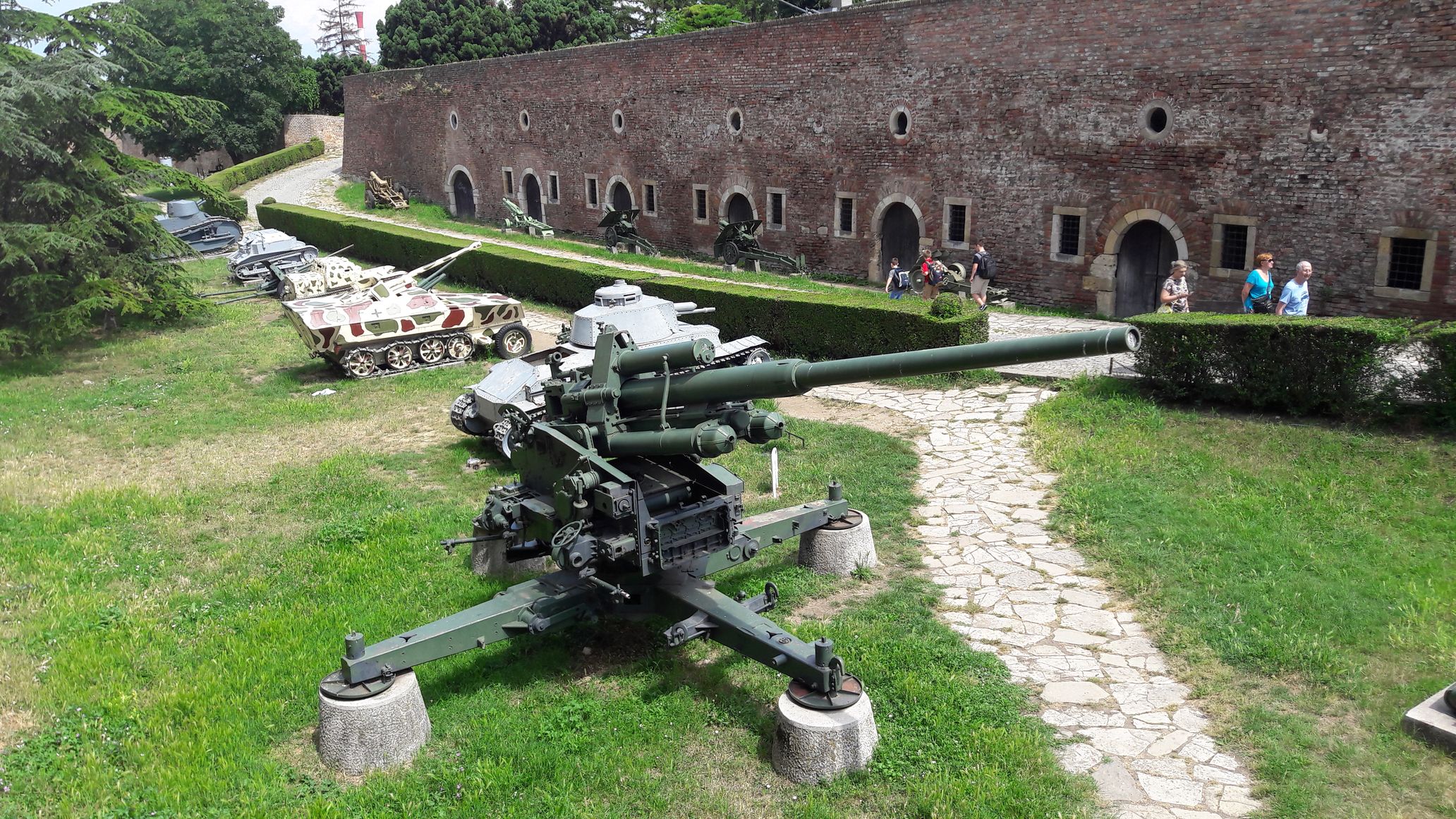 A my nieco po południu pospieszyliśmy na… forty. Kalemegdan, tak jest tu nazywany, to fortyfikacje w Belgradzie wybudowane za czasów celtyckich, a następnie za czasów rzymskich znane pod nazwą Singidunum. Zabudowania znajdujące się na wzgórzu wysokości około 125 merów współcześnie pochodzą głównie z XVII wieku. Znajdują się tam również antyczne wykopaliska i katakumby rzymskie. Ślady rzymskich budowli to np. stara studnia rzymska (35 m głęb., 3,4 m szer.), odbudowana w 1731 r. przez Austriaków. Są tam również cerkwie, bramy historyczne, grobowce tureckie, a także muzeum wojskowe oraz ogród zoologiczny. Twierdza znajduje się w dzielnicy Stare Miasto i jest jedną z ważniejszych atrakcji turystycznych miasta. Z twierdzy roztacza się panorama na ujście rzeki Sawy do Dunaju. Znajduje się tam również rozległy park będący miejscem spotkań, spacerów i odpoczynku.