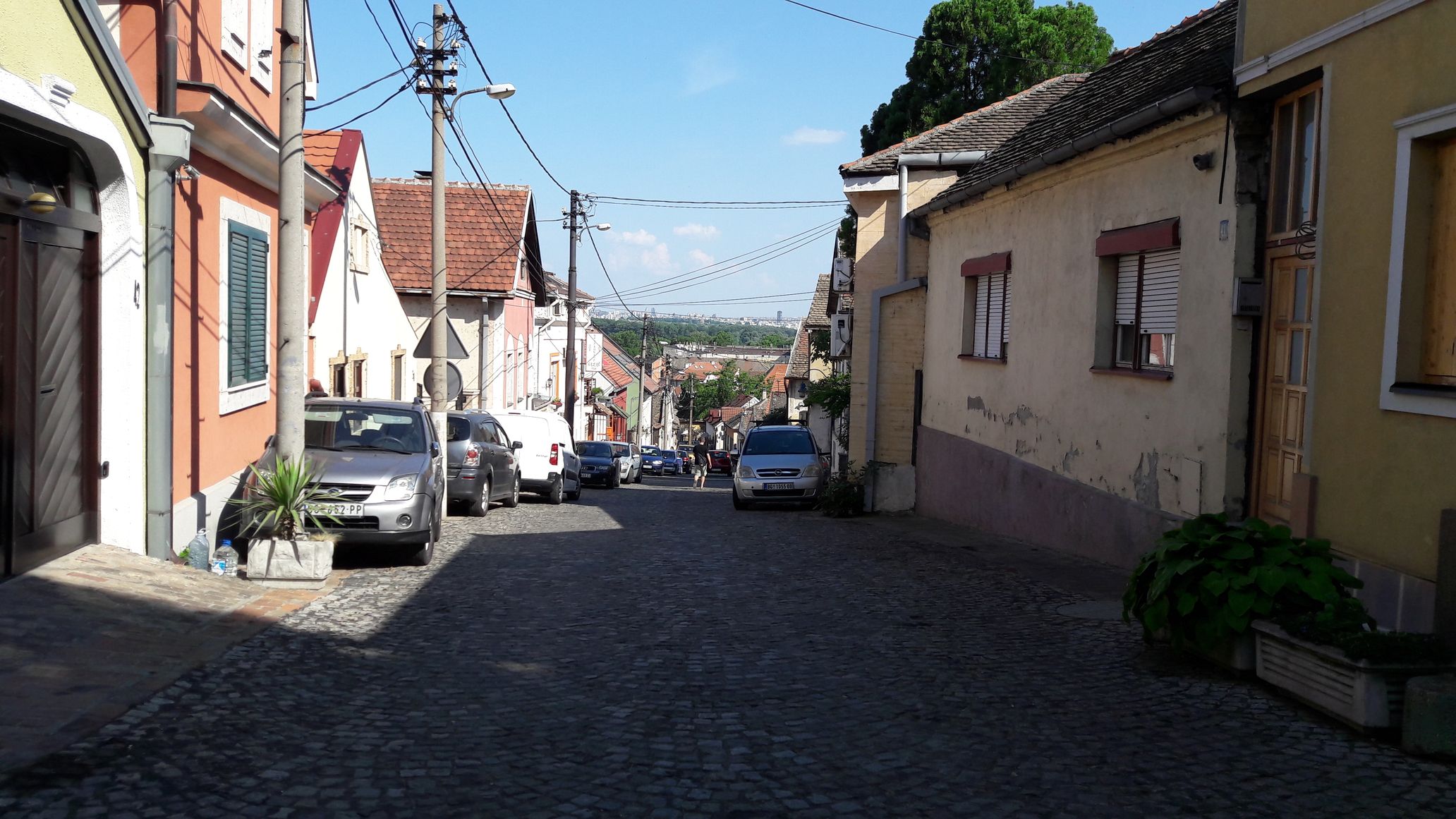 Jakże cudownie było się szwędać po zupełnie innym mieście, malowniczych, cichych uliczkach. Kupić na straganie po pół kilo truskawek i czereśni i pałaszować je siedząc na ławeczce, położonej dokładnie między cerkwią, a kościołem katolickim. Potem podejść na górę pod wieżę Gardoś, powstałą w 1896 wieku i mającą upamiętnić tysiącletnie panowanie Węgrów na tym terenie. Po drodze zaglądać ludziom do obejść. Patrzeć, jak życie toczy się tu wiele wolniej niż za mostem na Dunaju. Faktem jest, że żar z nieba skutecznie odstrasza Serbów, przed jakimikolwiek niepotrzebnymi ruchami po mieście w godzinach południowych. Tylko my, spoceni jak norki, ale jednak łaknący słoneczka przemierzaliśmy całe kilometry uliczek Zemun.