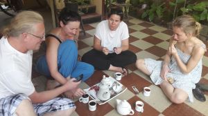 Na dwie noce zatrzymaliśmy się w pensjonaciku, o wdzięcznej nazwie Lazar Residency, choć w zasadzie nieco rozbudowanym domku jednorodzinnym, skromnych, pracowitych i przemiłych …. katolików. Pan lat 48, w 18. letnim stażu małżeńskim, z miłą i elokwentną panią – lat 44. Katolików, chodzących co niedzielę do kościółka – jednego z tych, które zwiedzaliśmy. Osiemnastoletnia córka i szesnastoletni syn. I dodać należy, córka niepełnosprawna fizycznie i psychicznie. Zaś o poziomie życia w tym stanie świadczyć może fakt, że córka chodzi do szkoły specjalnej. Fakt dość szczególny w Indiach. Wspólne śniadanko, w styli Indii rzecz jasna, czym zaskarbiliśmy sobie natychmiast wiele sympatii gospodarzy. Oni wypytywali nas, my zaś ich o ich życie w Indiach i w Kerali.