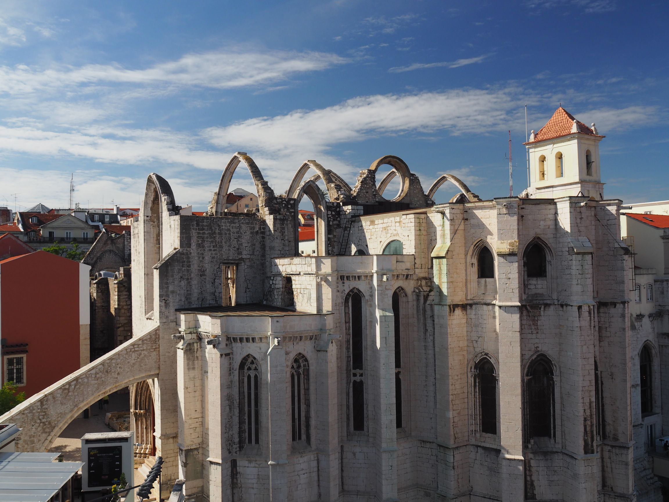 Ten dzień w swym założeniu miał być najleniwszym z leniwych. Chcieliśmy dać odpocząć swoim nogom i pozostałym organom. A wieczorkiem pomaszerować na koncert fado połączony rzecz jasna z kolacją. Śniadanko i z powrotem do łóżka, nieopodal akwarium. Kole południa sprawdziliśmy funkcjonowanie naszych nóg i stan umięśnienia. Było ok. Za oknem słoneczko dość jasno mówiło: powariowaliście biedne Polaczki? Ja tu się dla was dwoję i troję a wy co. Zawstydziliśmy się ogromnie i w te pędy pobiegliśmy w nasze miejsca. Ogromnie kusiło wejść w to słoneczne południe gdzieś, gdzie jest wzorcowo, a i słoneczko pokaże nowe, dotąd nam nieznane, oblicze Lizbony. Nadawało się do tego muzeum archeologiczne. Nim jednak tam dotarliśmy skorzystaliśmy ze słynnej windy Santa Justa. Jednego z najstarszych wznoszących się obiektów w Lizbonie. Odstaliśmy swoje w kolejce, najpierw w kolejce kwalifikacyjnej, a potem tej do drzwi zabytkowego eksponatu – windy. Stamtąd podążyliśmy do muzeum. Muzeum Archeologiczne Carmo w Kościele Karmelitów w Lizbonie, czyli w słynnym kościele bez dachu, jak czasami nazywany jest ten obiekt, jest jednym z najczęściej polecanych muzeów w centrum Lizbony. Dlaczego? Wstęp do niego nie jest drogi, a jego wnętrza i kolekcja eksponatów potrafią zachwycić każdego, kto zdecydował się odwiedzić się to muzeum. Kościół Karmelitów, jak i cały zresztą obiekt klasztoru, to cichy świadek największej tragedii w Lizbonie – wielkiego trzęsienia ziemi z 1755 roku, o którym wspominałem już wielokrotnie. Przez dach, którego w zasadzie nie ma, przebijało piękne słońce. Ci nieliczni, którzy tego samego dnia zwiedzali tę świątynie, korzystali, tak jak my z pięknego światła i przyglądali się w milczeniu resztkom kościoła i zgromadzonym tam eksponatom. Aby jeszcze bardziej rozkoszować się ciepłem tego dnia pospieszyliśmy nad Tag. Tam, na najważniejszym placu w tym mieście, roztańczony zespół zapraszał zgromadzonych do wspólnej zabawy. Do tańca najchętniej przysposobiła się pewne starsza pani. Ku uciesze grających, ochoczo pląsała w rytm melodyjnych portugalsko – brazylijskich