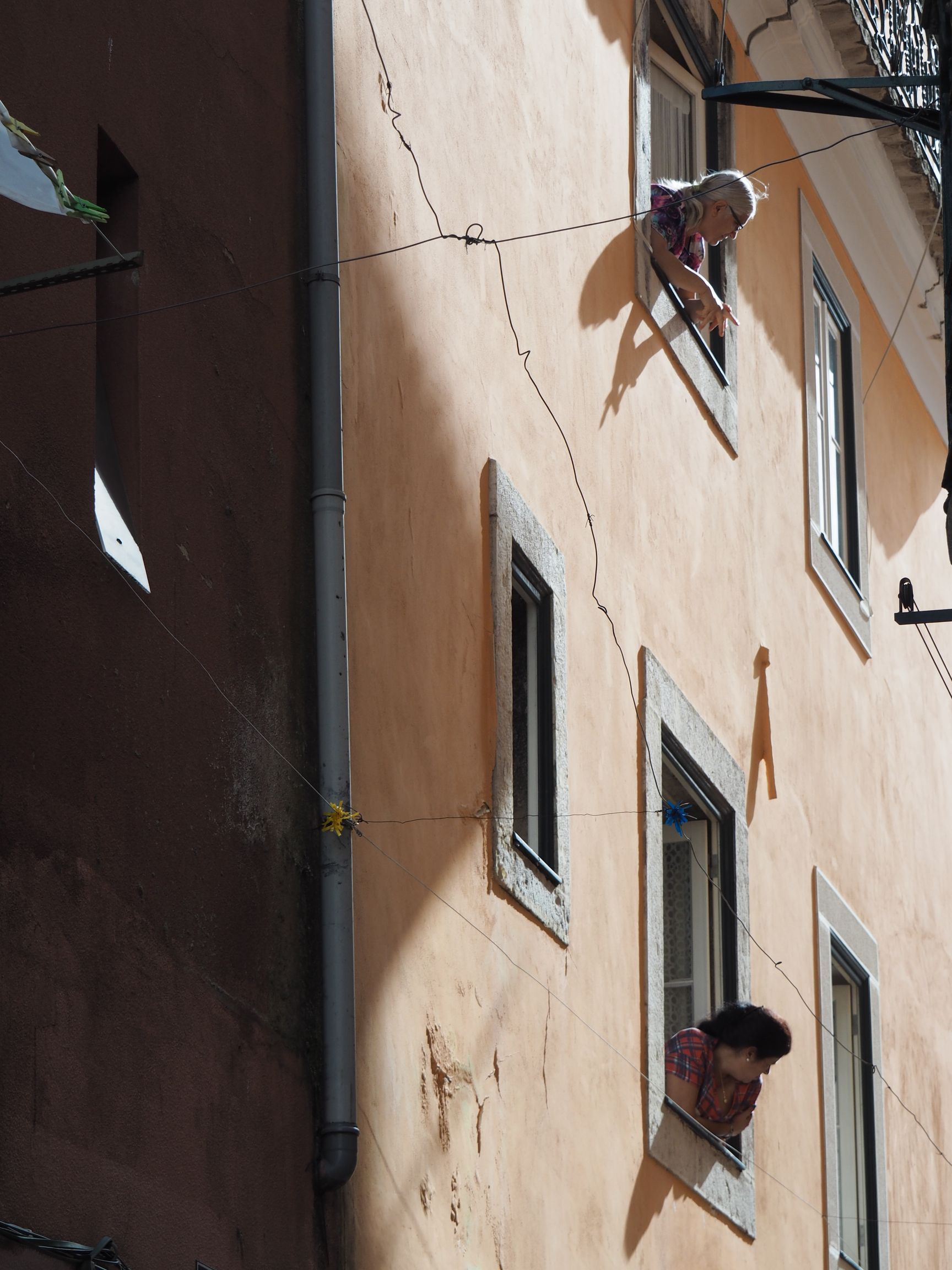 Później powędrowaliśmy nieco wyżej do dzielnicy, w której mieszka Maria. Alfama to jedyna dzielnica, która nie ucierpiała podczas trzęsienia ziemi. Zamieszkują ją głównie ludzie biedni, właściciele maleńkich barów i sklepików. Ta dzielnica bardzo niewiele zmieniła się od wielu lat. Maria pokazała nam zdjęcia, czy nawet ryciny z XVII wieku. Naszą przewodniczkę oczywiście zaczepił starszy Pan, który natychmiast zaproponował jej kawkę i to, że pokaże jej jeszcze wiele ciekawych pamiątek. Al- hama znaczy źródło w języku Maurów i jest na pewno obowiązkowym miejscem dla bardziej dociekliwych turystów zwiedzających to miasto. Jeśli jeść to właśnie tu. Rybka też tylko tu. Skorzystaliśmy z rady i zjedliśmy rybkę, a potem zamierzaliśmy iść do lokalu naprzeciwko by posłuchać fado. Tam dramat, łzy szlochanie i policja. Kelner od rybki oznajmił, że „mother” i tu wykonał gest palcem dookoła gardła. Zrozumieliśmy, że tego wieczoru w tym miejscu fado sobie nie posłuchamy. Coraz to nowe osoby dojeżdżały. Przytulały i pocieszały się wzajemnie. My za pomocą mapy i jednej sympatycznej Pani odnajdywaliśmy drogę do domku. Po drodze małe zakupki, jakieś z całą pewnością portugalskie winko i plany na kolejny dzień.