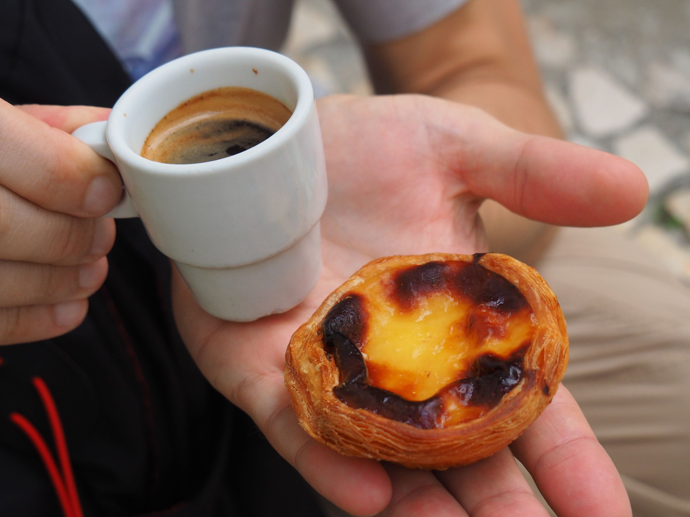 Jazdę, cytując klasyka: „zaliczyliśmy”. Nic szczególnego. Znam drewniane, skrzypiące tramwaje z dzieciństwa. Tłok, turyści z wycelowanymi aparatami i smartfonami. Tyle, że trochę odpoczęliśmy od upałów i marszu pod górę. Kolejny etap miłego dnia to ciacho, z poleconej nam ciastkarni ze słynnymi lizbońskimi ciasteczkami – pasteis de nata. Tylko tu za „zwykłą” cenę można je zjeść jeszcze cieplutkie. Usiąść na schodach i popatrzeć w okna i twarze ludzi, zerkających na mnie z ciekawością.