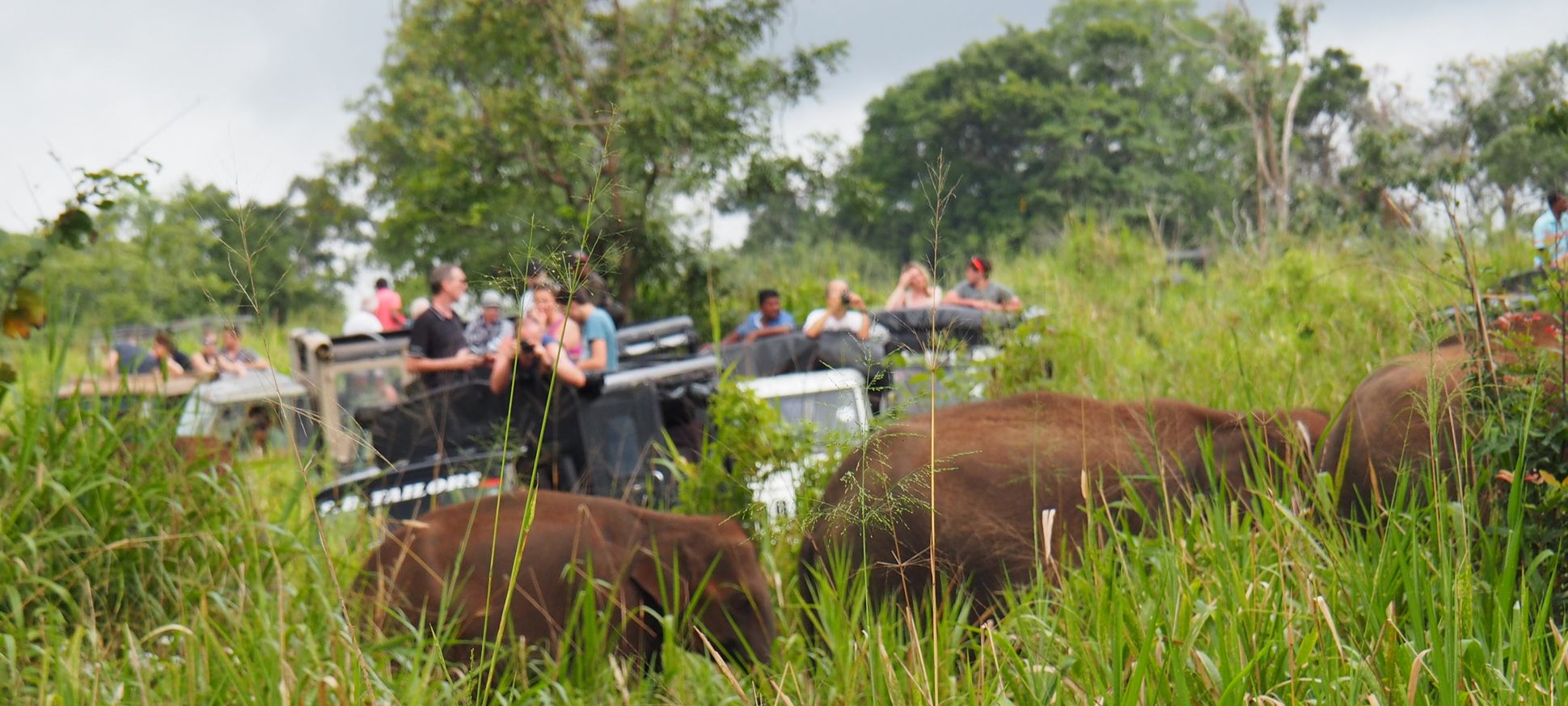 Punkt piąta wyszliśmy ze swoich baraków i wsiedliśmy do wozu terenowego. Był to już nasz trzeci z kolei wypad w dżunglę. Tym razem miał to być park Yala, najbardziej znany z możliwości zobaczenia leoparda. Nim jednak wjechaliśmy do parku , zastał nas horror. Niemal setka aut. W większości sami Chińczycy w maseczkach przeciwpyłowych. I w tym wszystkim moja refleksja, po co mi to? Druga zaś, jak wiele w stanie jest poświęcić człowiek, by zobaczyć choćby resztki dziewiczej przyrody, którą sam notabene zniszczył. Nic wszak z magii dżungli pewnie nie zdołamy zobaczyć a nade wszystko usłyszeć… ale cóż słowo się rzekło. Siedzieliśmy w wozie. Logika wskazywała, że możemy nie spotkać żadnego zwierza, a już na pewno leoparda. Przed tyloma samochodami sam bym uciekł a co dopiero zwierzęta.