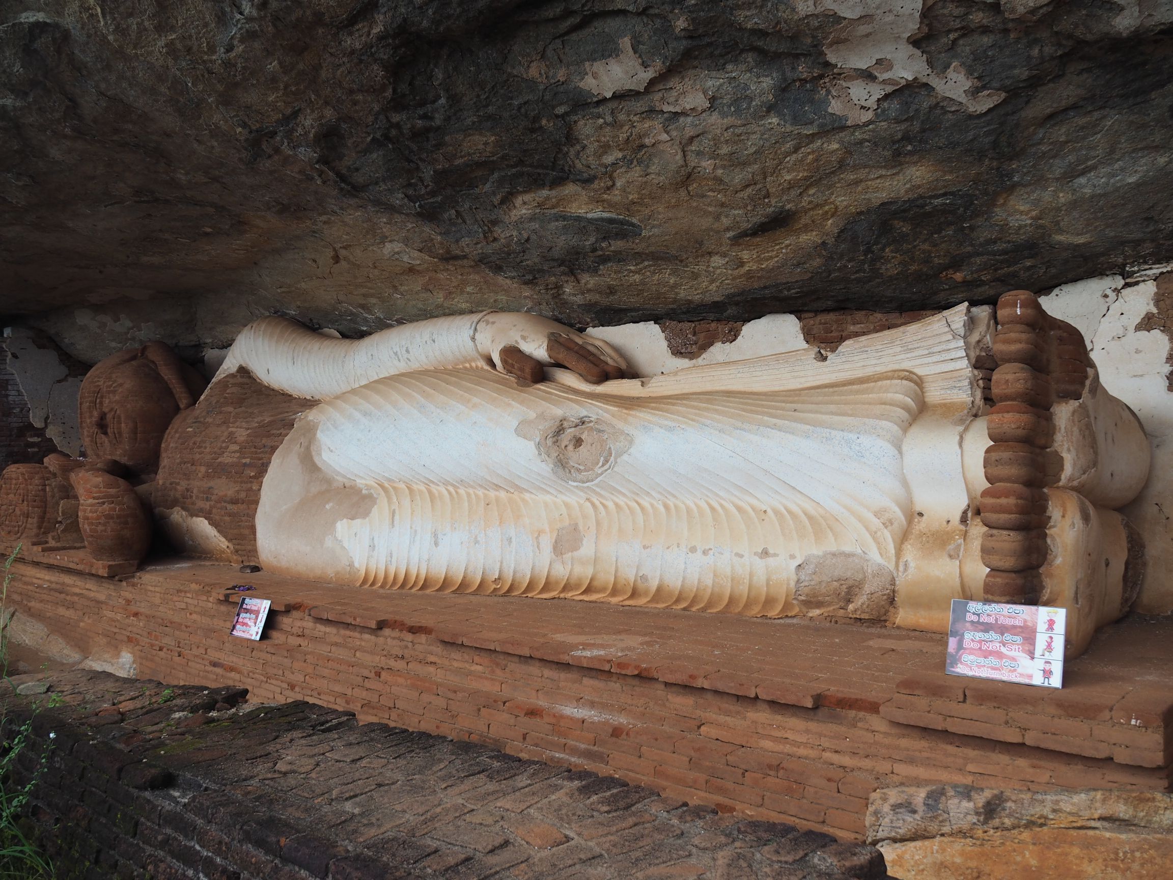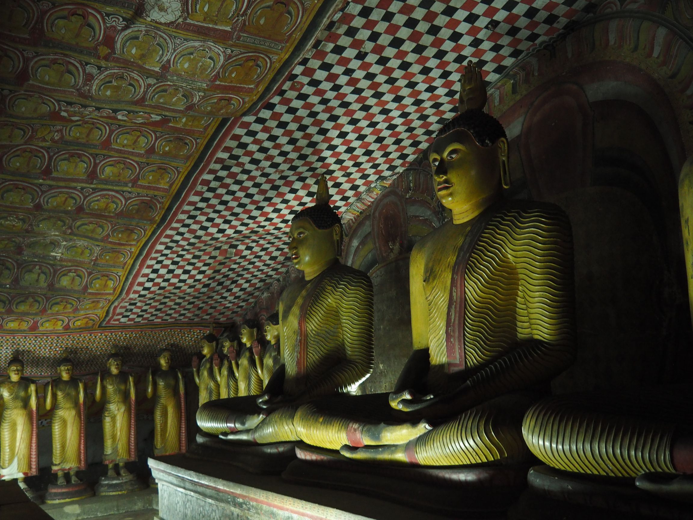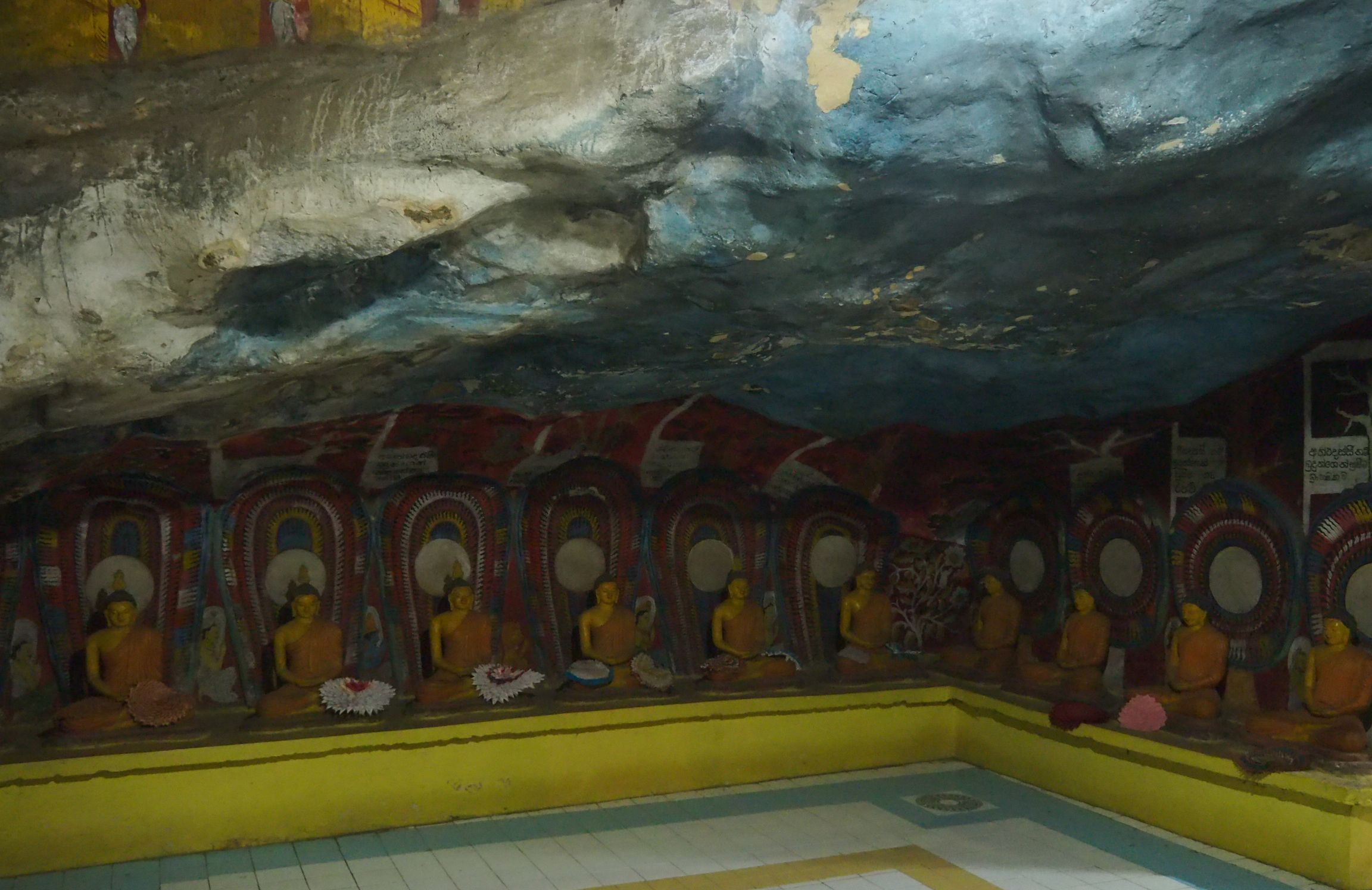 Na górkę Sigirya, co prawda nie wleźliśmy, bo znowu padało, za to szybko wykombinował kilka atrakcji. Przede wszystkim pierwsze kroki skierowaliśmy do Dambulla, znany i rozpoznawalny na zdjęciach kompleks świątyń wyżłobionych w skale, z pierwszego wieku przed Chrystusem, ze złotą świątynią. Coś niezwykłego. Wykombinował, bo właśnie w tym miesiącu, nie pobierają tam słonych opłat. Pobierają za to za toaletę. Ja i tylko ja miałem okazję się o tym przekonać. 100 rupii, to najwyższa moja cena za siusianie, to jakieś ¾ dolara (dolar to około 140 rupii). Sam Kusum śmiał się z tego, ale cóż robić.