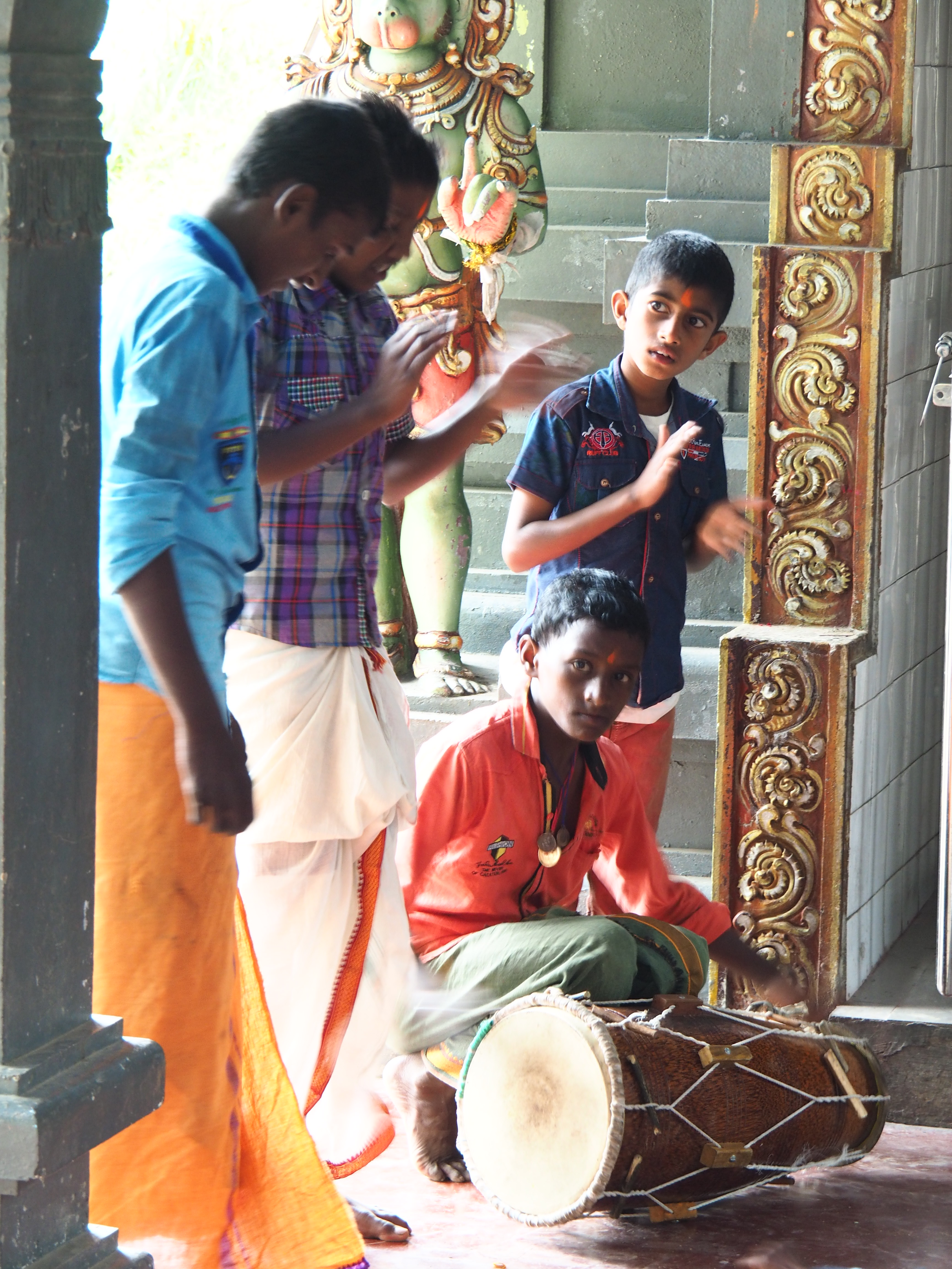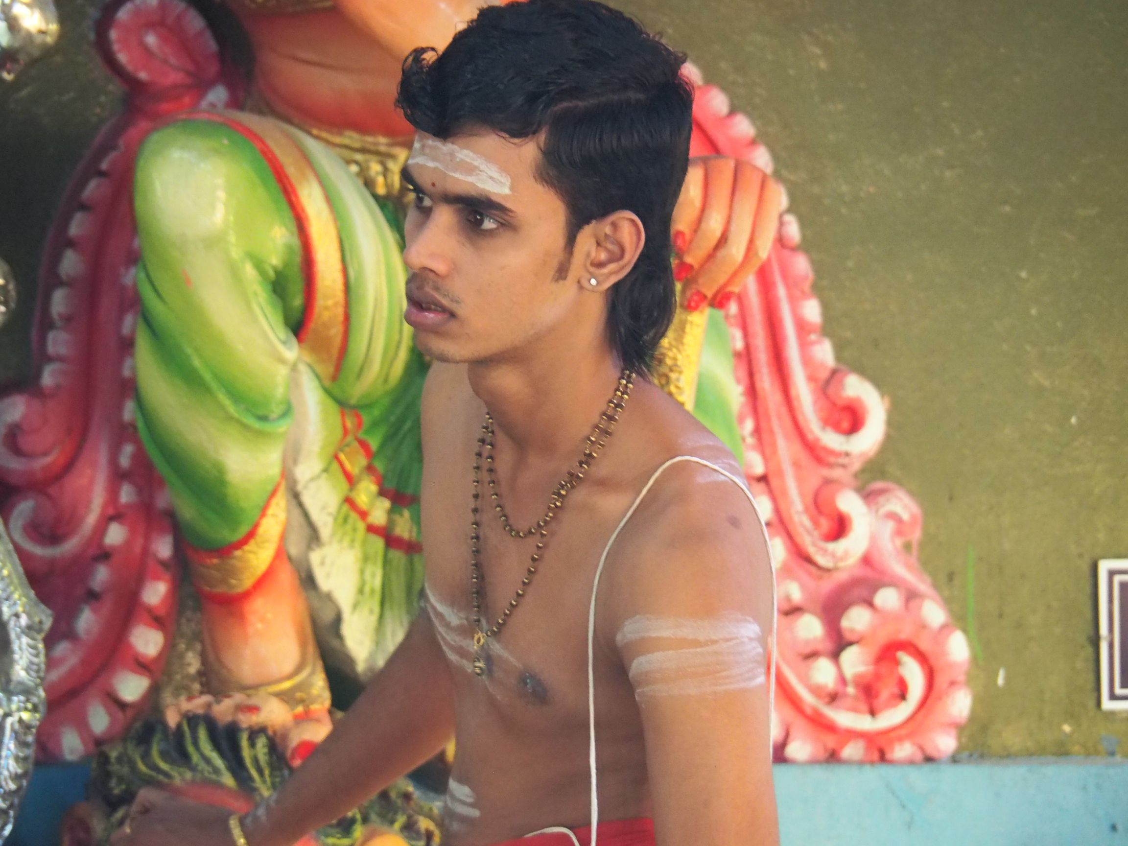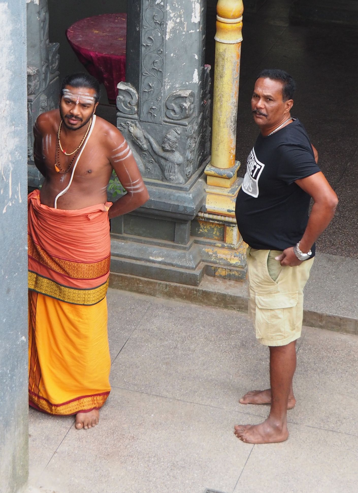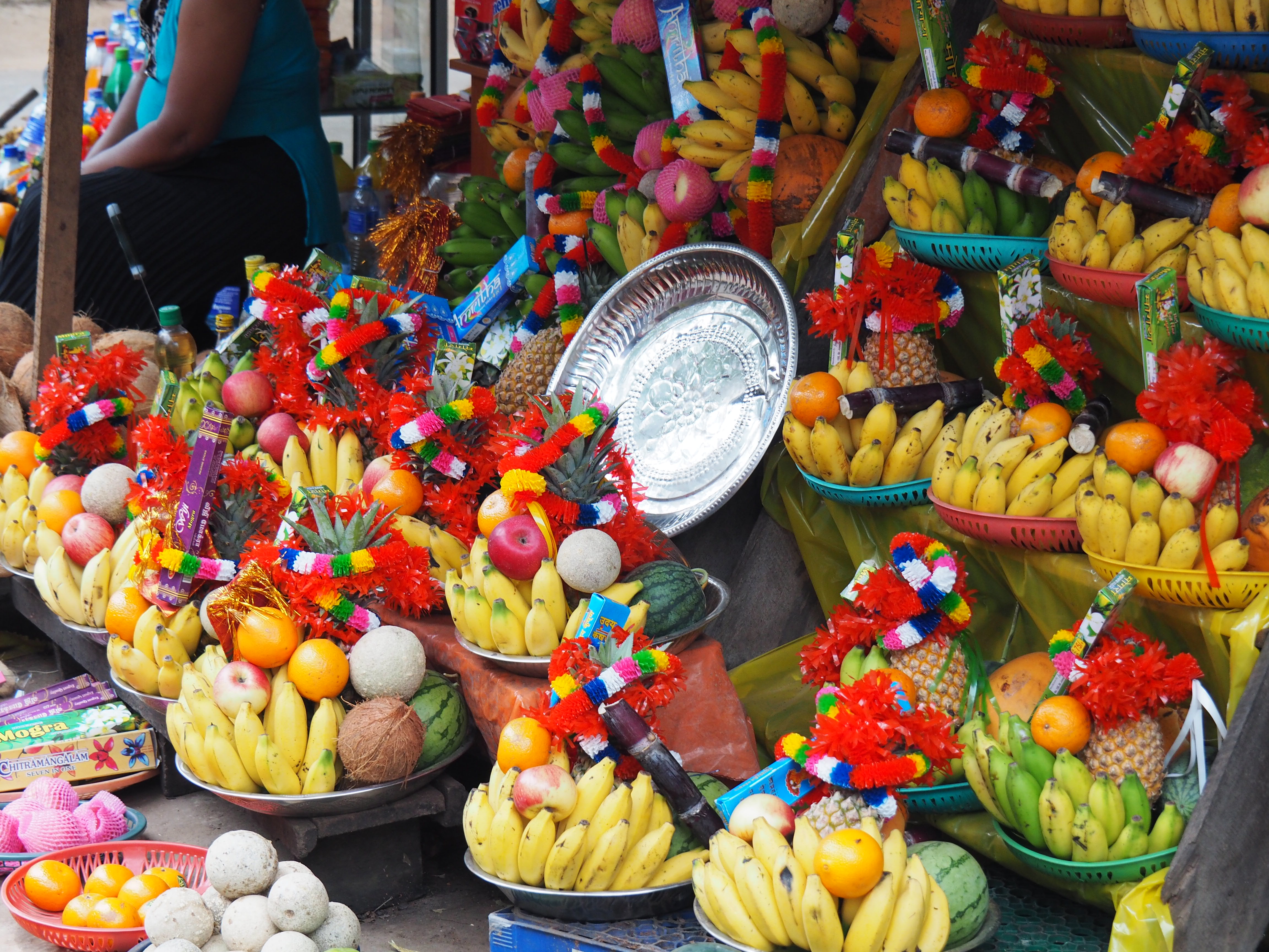 Badulla, to mała mieścinka, wypełniona pędzącymi i trąbiącymi tuktukami. Ludźmi wychylającymi się ze swych sklepików, warsztacików, chcących zobaczyć białasa. I obowiązkowo uśmiechających się do mnie. Gdy wyszliśmy z małej probrytyjskiej stacyjki kolejowej, byliśmy chyba jedynymi białasami w mieście w tym czasie. Przy wejściu na peron kartonikowe bilety są kasowane, a przy wyjściu z pociągu a potem ze stacji – zabierane. tak zarządzili Brytyjczycy, i tak robi się tu do dziś. Kusumi od razu pokierował nas w kierunku świątyni Muthiyangana Royal Temple, wiedząc, że to na pewno lubimy. Niczego innego w tym mieście nie da się oglądać. Spotkaliśmy śmieciarkę, która przejeżdżając główną ulicą miasta obwieszczała to mieszkańcom, grając jakąś śmieszną melodię z pozytywki. Wszyscy pospiesznie wyciągali worki i kubły śmieci. Zaś jadący śmieciarz, zgarnia to wszystko na przyczepę. Bardzo podobna pozytywka, choć nie, ta to „do Elizy” Beethovena, obwieszcza wszystkim, że jedzie wóz z pieczywem. Wóz, to taki większy tukuk, z bułkami i chlebkiem, który zaopatruje straganiarzy w pieczywo.