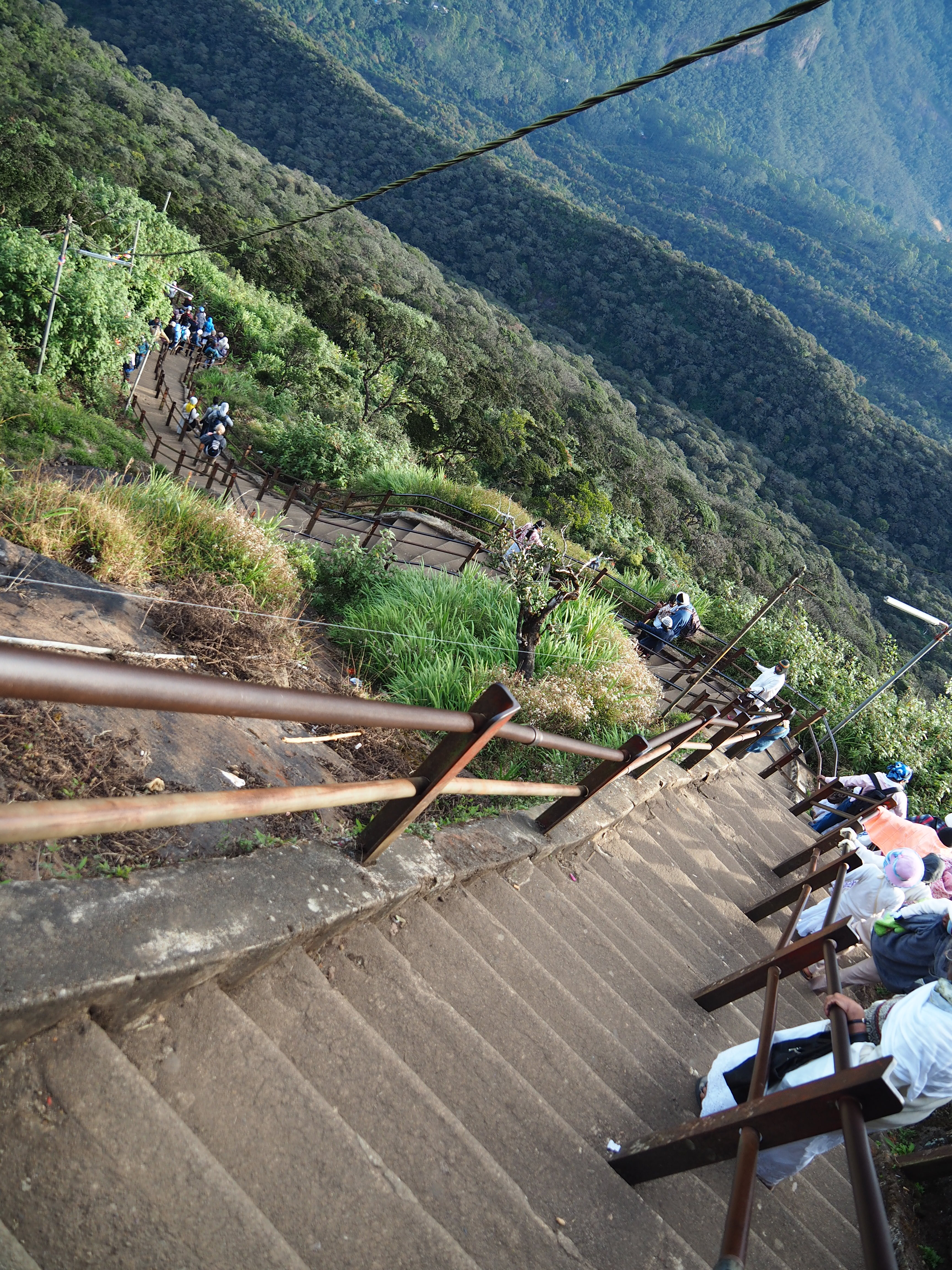 Mały Adams Peak również zdobyty. Były groźby, były żale, że nie, że wszyscy jeszcze obolali, że po co? Ja zamarzyłem sobie jednak wejście. Ukłon dla mojej Agniesi, która nadal walczy w kostką. Jest oczywiście lepiej, ale do ideały jeszcze trochę brakuje. Weszła dzielnie i ni słowem nie skomentowała całego pomysłu. Dzielna i kochana. Poszliśmy w porze tzw. normalnej, krótko po lankijskim śniadaniu, które tym razem nie zachwyciło nas swym smakiem. Ruszyliśmy z naszym Kusimim. Kiedyś przy innej okazji narzekał, że ma problemy z kolanem. Wiemy więc, że nie jest chętny do tego typu eskapad górskich. Tym bardziej godne podziwu, że chciał być z nami. Wejście zajęło nam godzinę z małych haczykiem. Dopiero pod koniec, mały Adams przypomniał sobie o schodach, jak gdyby chciał dorównać swojemu większemu bratu. Krótka zadyszka, kilka niecenzuralnych określeń, może ze sto schodów i już byliśmy na wierzchołku. Tam zaś stado nierozgarniętych Rosjan z potomstwem. Dzięki bogu szczyt posiadał swoje zakamarki i „podszczyciki”. Można się więc było odseparować i w ciszy delektować rewelacyjnymi widokami na całą dolinę Ella. Gdyby jeszcze słoneczko było łaskawsze, byłoby rewelacyjnie. Po drugiej stronie swe muskuły prężył Ella Rock, najwyższy szczyt w okolicy. Kusił, oj kusił i pięknie prezentował się z tej strony. Wymieniliśmy tylko uwagę z Jackiem, że może by jutro nad ranem? Magda zgasiła nas jednak – ale beze mnie! Agniesię, też wolę oszczędzać, więc popatrzyliśmy na tę skałkę tylko wzdychając. Delektując się widokiem, podeszła do nas…. powiedzmy M. Prawdziwe imię utajniamy, ze względu na dobro osoby, której dotyczy owa opowieść. Podeszła, poprosiła i zapytała, czy możemy ją sfotografować, gdyż słyszy mowę polską. Od słowa, do słowa. Dowiedzieliśmy się, że M. przeżyła koszmar. Poprzedniego wieczoru, jakiś „tuktukarz”, wywiózł ją nie do hotelu lecz w inne miejsce i proponował seks. Narobiła krzyku i skończyło się na potwornym strachu. Strachu do tego stopnia, że dziękowała nam za towarzystwo. Szybko przedstawiliśmy jej naszego Kusumiego, który nie na żarty przeraził się tą sytuacją. Było mu zwyczajnie wstyd, tak, jakby on odpowiadał za całą Sri Lankę. Dał jej kilka rad, podał jej swój telefon i powiedział, że w każdej chwili może jej pomóc. Przygarnęliśmy M. i razem pojechaliśmy do fabryki herbaty, zielonej herbaty. Razem zjedliśmy na lunch i potem z bólem serca zostawiliśmy ją przy posterunku policji, by opowiedziała im swoją historię. Nasze drogi rozmijały się. M. udawała się tam, skąd myśmy wracali. Dziękowała za naszą obecność, za możność zwykłego pogadania. Inaczej nie mogliśmy jej pomóc, pożegnaliśmy się i sami daliśmy jej kilka zwykłych „azjatyckich rad”, jak dawaliśmy sobie radę z Hindusami. Pozostaje mieć nadzieję, że M. wyczerpała już limit złych emocji, że dalej będzie już tylko lepiej. Kusumi całość podsumował w ten sposób, że podróżowała sama. A tu jest miejsce nagromadzenia „zepsutych Lankijczyków” i jej zdarzył się właśnie kontakt z kimś takim.