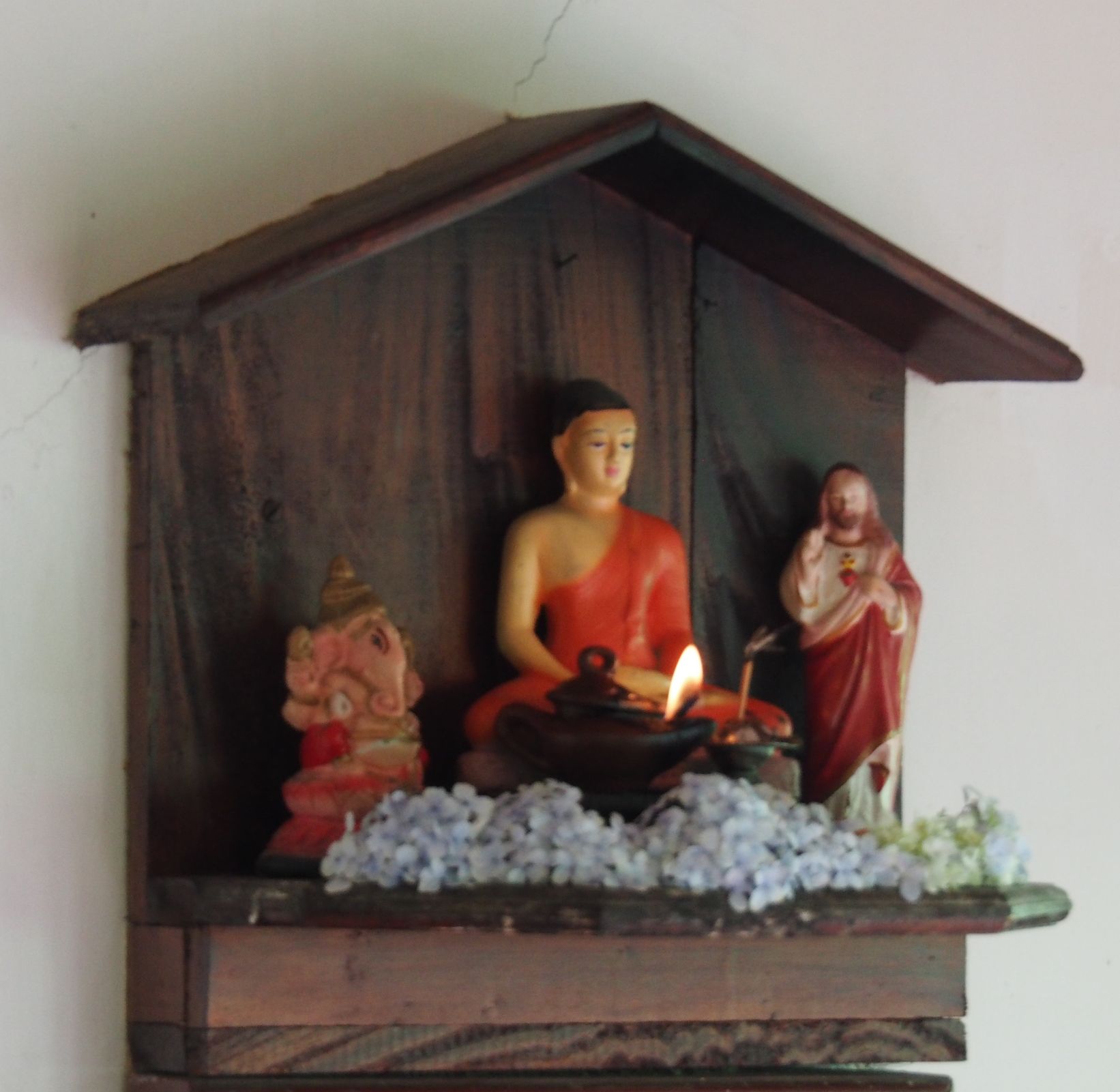 Jedyni biali na ten moment, jak zwykle, łaziliśmy sobie po całym terenie świątyni. Zaglądaliśmy, coś wypatrywaliśmy. Każdy znajdował coś dla siebie Podpatrywaliśmy tubylców, modlących się, praktykujących swe buddyjskie obrzędy. Kusumi kupił nam kilka kwiatów, każdemu jeden, które położyliśmy przed jednym z posągów Buddy. Niewiarygodne, za każdym razem być w takim miejscu. Niektórzy siedzą w kącikach świątyń lub tuż obok, śpiewają lub wypowiadają mantry. W intencji chorej osoby, chodzą z dzbanem wody, wokół świętego drzewa. Po kilku okrążeniach, woda wlewana była do specjalnego naczynia nawadniającego drzewo. Taki rytuał powinno się czynić, przez okres tygodnia. Ktoś inny właśnie zawiesza na drzewie swą prośbę do Buddy a w zawiniątku jest jakiś pieniążek. Wiele czasu spędzamy właśnie na takim poznawaniu tej religii i sprawia nam to ogromną frajdę, zwłaszcza wtedy gdy świątynia jest mniej turystyczna.