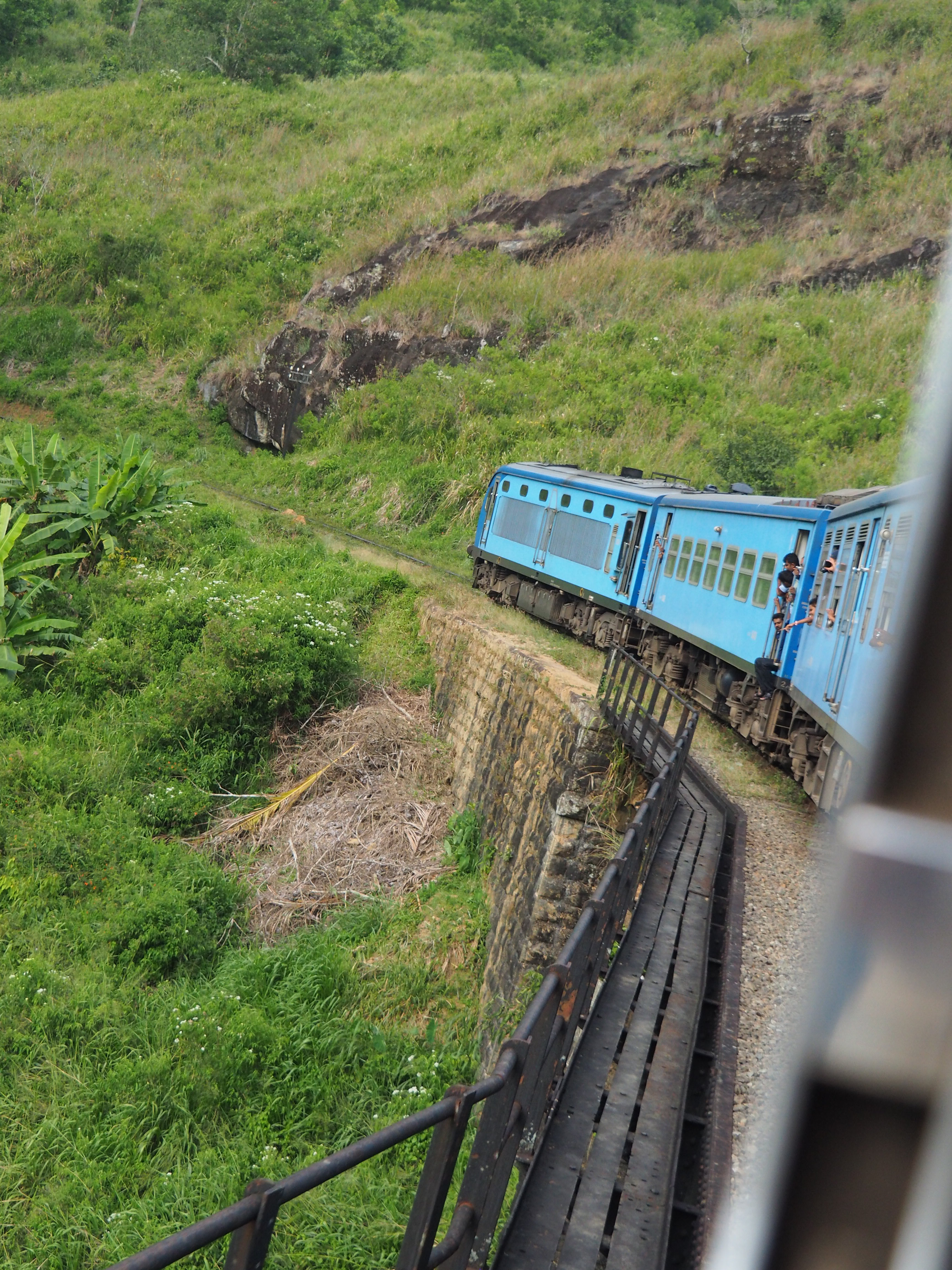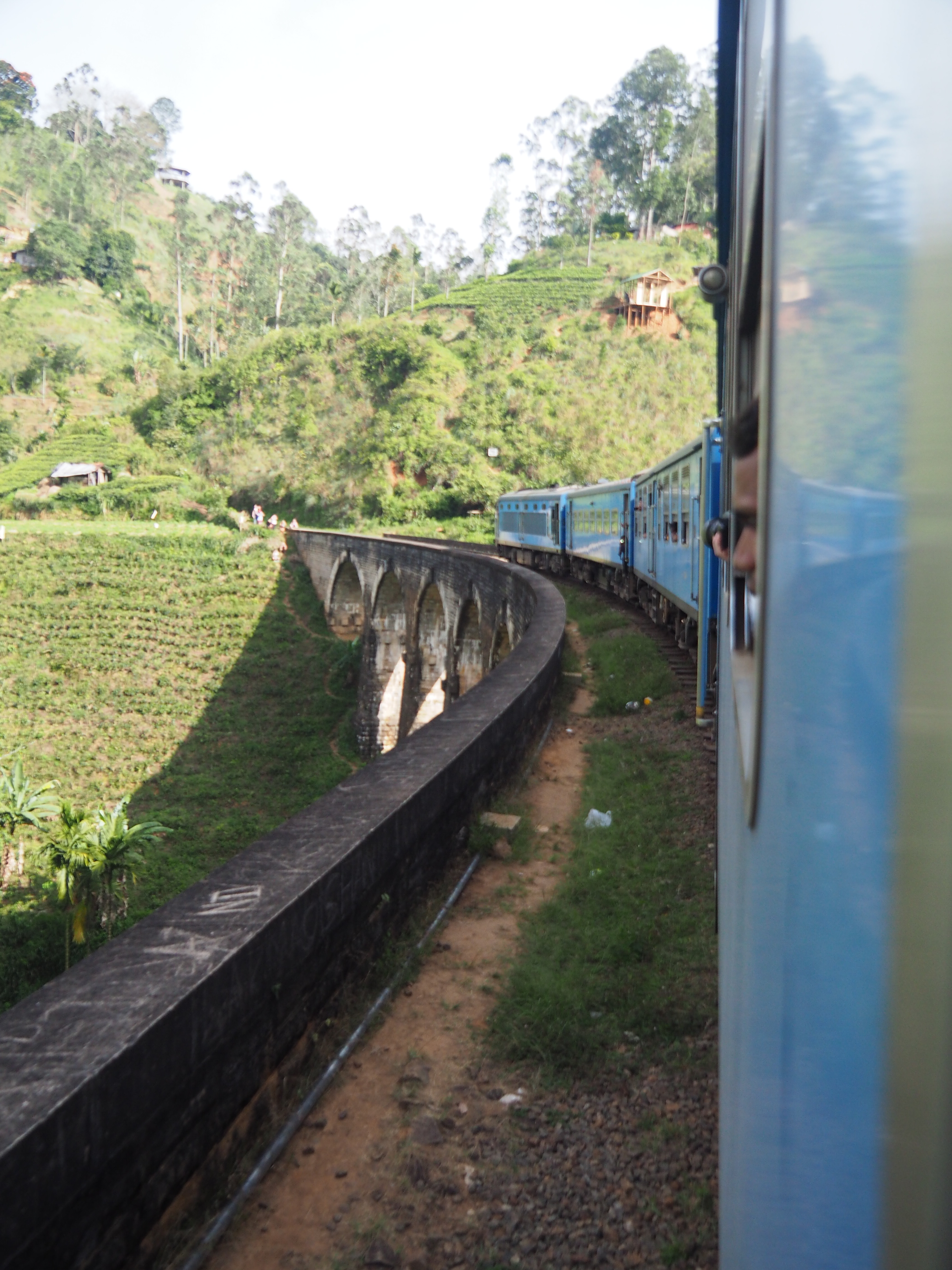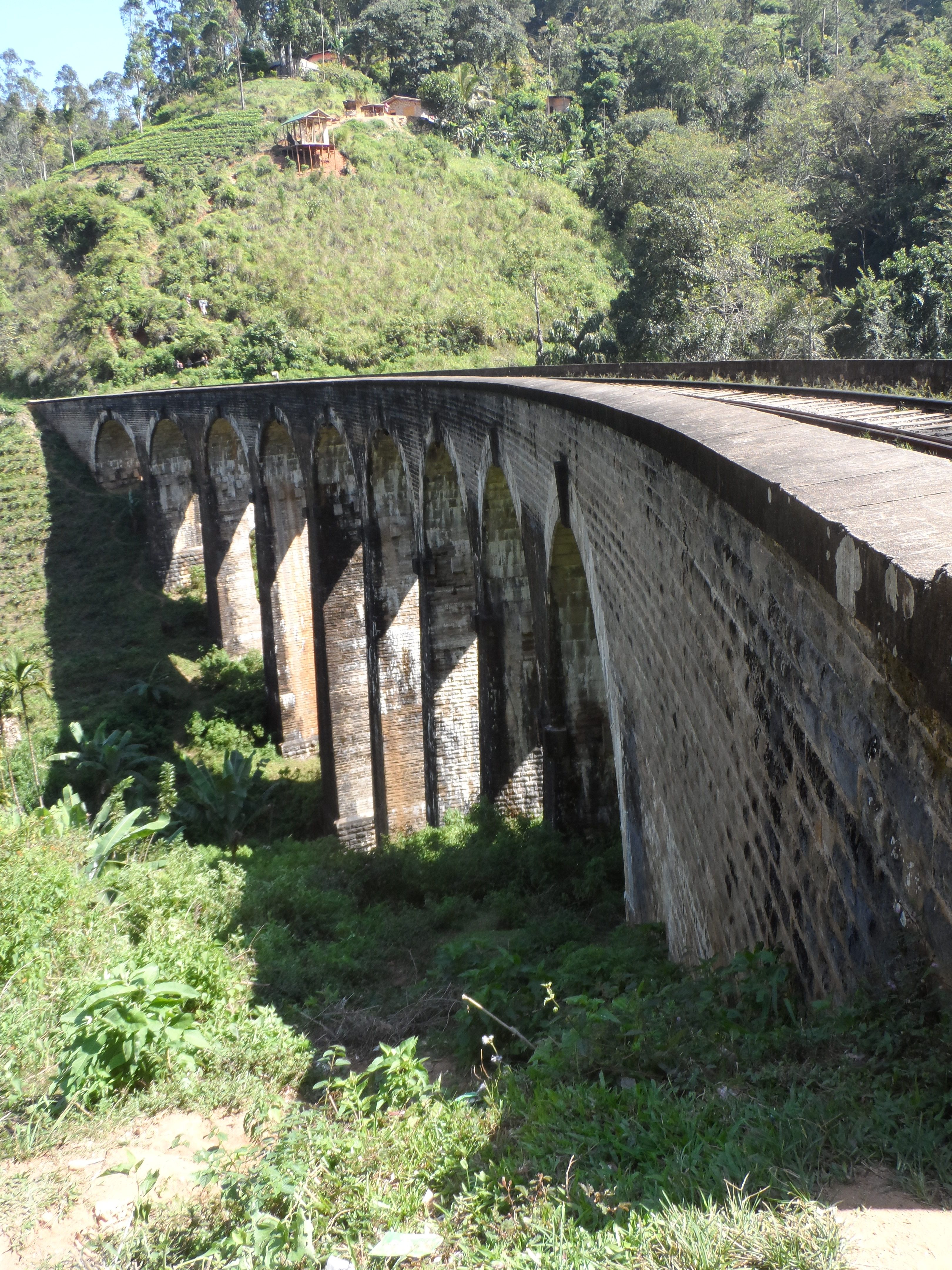 Kolejnym punktem było odwiedzenie mostu kolejowego. Pięknie położonego, zbudowanego jeszcze przez Brytoli – Nine arch Bridge. Bardzo znany most, z dziewięcioma charakterystycznymi łukami. Dotarliśmy tam nie bez małej przeprawy. Trochę nawet obawialiśmy się powrotu pod górę. Agnieszkę wciąż boli stopa. Gdy wreszcie ukazał nam się w swej okazałości. Piękne słoneczko, dookoła zieleń i cisza niezwykła, czekaliśmy na pociąg, który zaraz miał po nim przejechać. Grupka innych turystów, również w oczekiwaniu na niezwykłej urody zabytkowy pociąg, wyjęła swe urządzenia fotografujące. Upał doskwierał, a pociąg jechał zgodnie z lankijskim rozkładem jazdy, czyli, tak, jak mu pasowało. Po wszystkim Kusimi zaproponował, byśmy wrócili torami to Ella, by nie wspinać się znowu w tej dżungli. Poszliśmy więc. Niemal godzinna wędrówka po podkładach kolejowych wzmogła nasz apetyt i rozgoniła resztki zakwasów z Adamsa.