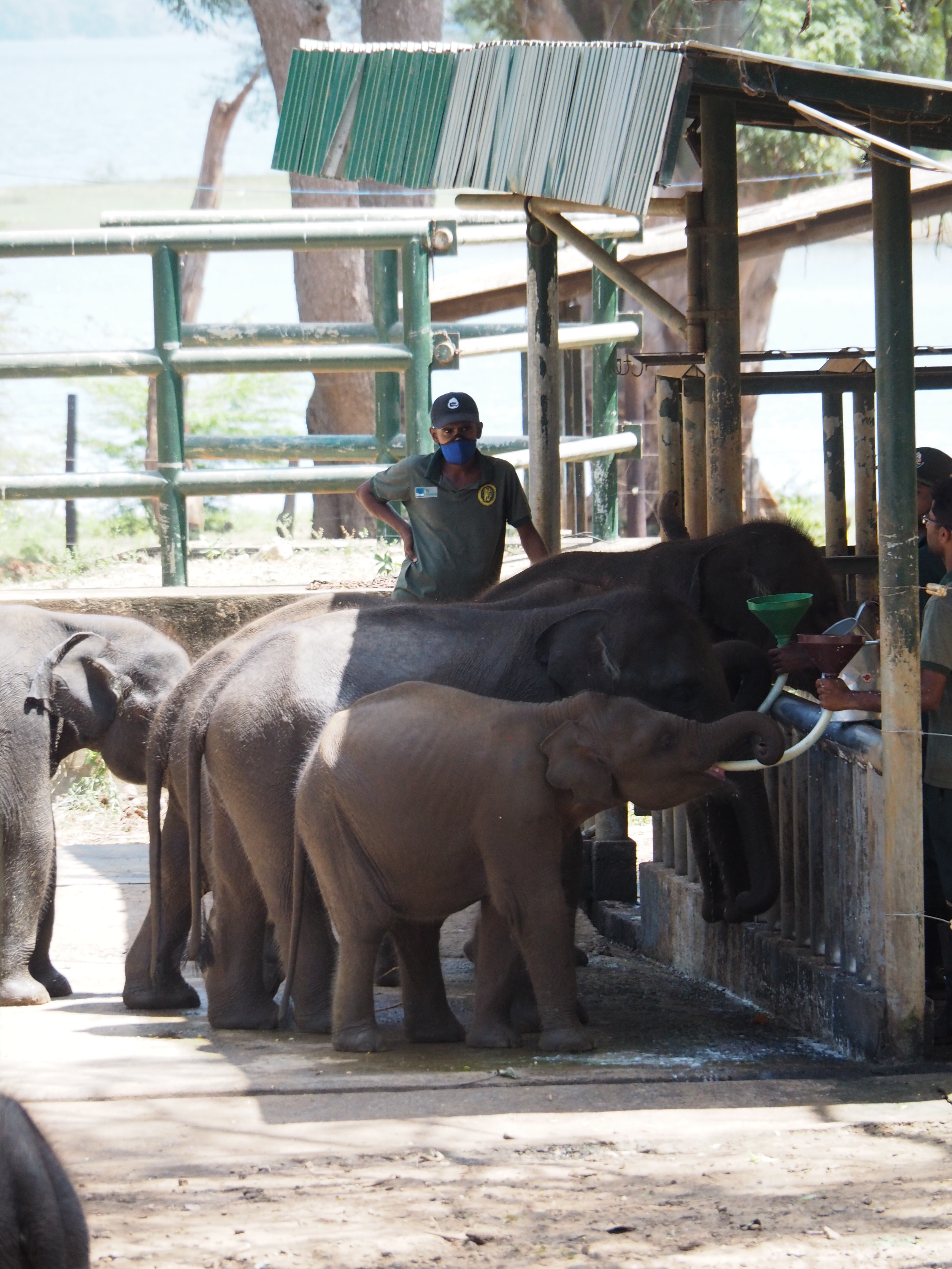 Dzień kiedy wyprowadziliśmy się z hotelu, był narodowym świętem Lankijczyków. 04 lutego, to ich dzień niepodległości. Tę odzyskali w roku 1948, wtedy jednak jeszcze nazywali się inaczej – Cejlon. Dopiero w 1972 roku, gdy „brytole” dali im na dobre spokój, zmienili nazwę na Sri Lanka, co znaczy w ich języku „wspaniała ziemia”. Przy śniadaniu złożyłem Kusumiemu oficjalne życzenia pomyślności, w tak ważnym dniu, od delegacji polskiej, z prośbą by przekazał te życzenia możliwie jak najszybciej oficjalnym władzom swojego kraju. Uśmiał się po pachy. Już od rana Kusumi informował, że to dla nich specjalny dzień, że ludzie organizują sobie wiele pikników, że wiele miejsc jest w tym dniu właśnie obleganych przez nich samych. Pierwszym punktem dnia, gdy przekonaliśmy się dość skutecznie o ich obecności była wizyta w sierocińcu dla słoni. Punkt 12. odbywać się miało karmienie małych samotnych słoniątek. Przed czasem zebrał się więc spory tłum gapiów i turystów. Ci pierwsi byli jednak w większości. Tubylcy w tym dniu wchodzili do obiektu za darmo. Turysta musiał zapłacić sporą sumkę. Ale, że cel był szczytny nie żal na było tych rupii. Spory obszar, z dostępem do zbiornika retencyjnego, zajęty były przez ten przybytek. Czas jak zwykle dla Lankijczyków nie miał zbyt wielkiego znaczenie. Sporo po dwunastej, słoniątka przybyły z plaży, mokre i wykąpane. Do poidełek z mlekiem były wpuszczane grupami. Wiele z nich podbiegało natychmiast do „mlekopoju”. Spory, metalowy lejek zakończony rurką służył wspaniale. Słoniątka otwierały paszcze i czekały na swoją porcję mleczka. Niektóre, bardziej zniecierpliwione pomrukiwały, inne próbowały oszukiwać i ustawiać się ponownie w kolejce. Całość chwilami wyglądała dość komicznie. W każdym razie napojone, zostały przeganiane na miejsce z liśćmi, gdzie miały sobie nieco podjeść i poczekać, aż cykl mleczny się skończy. Potem przechodziły na rozległy teren, gdzie dalej mogły sobie podjadać lub to figlować. Po półtorej godzinie byliśmy już w samochodzie.
