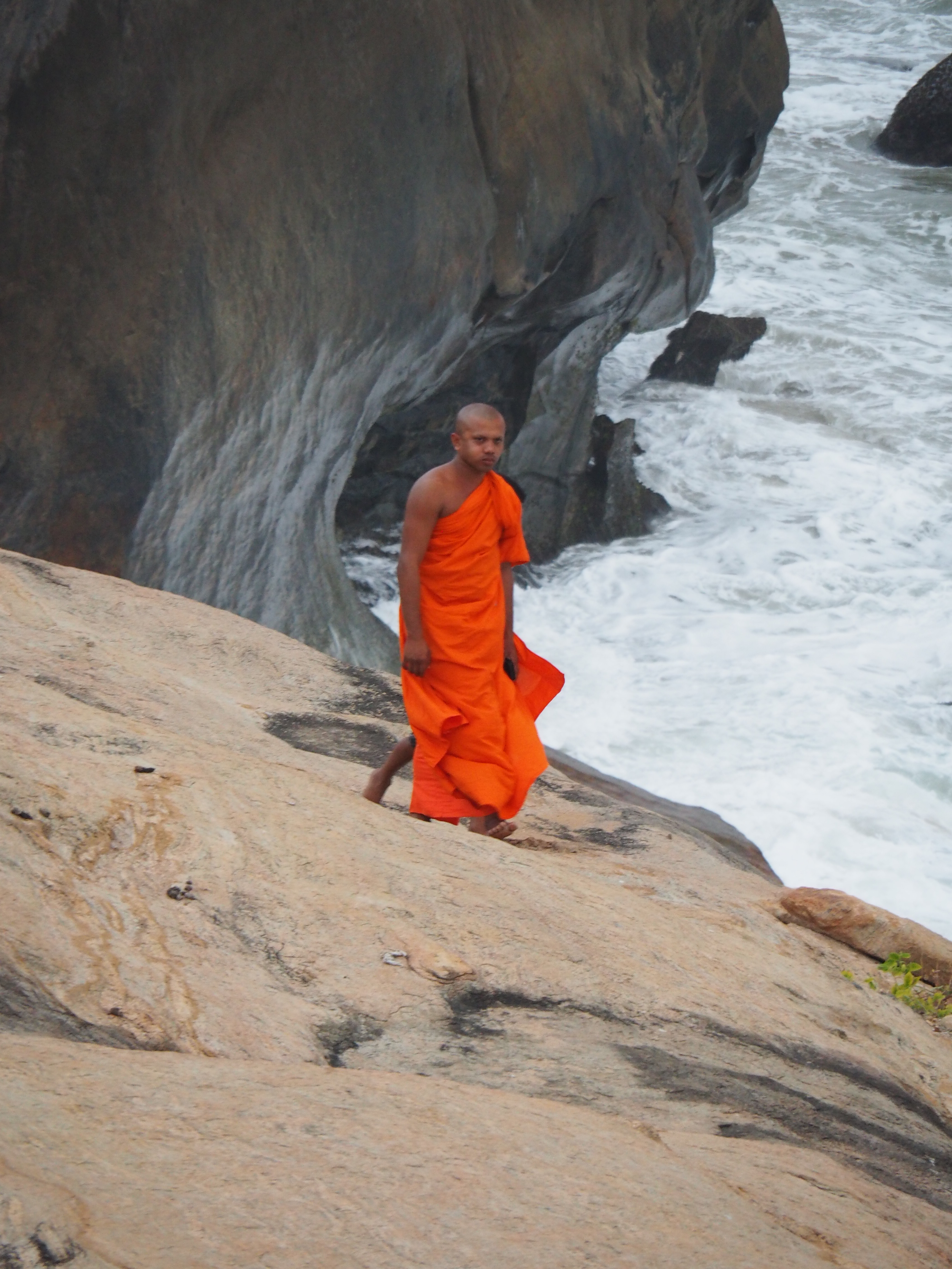 Wróciliśmy do hotelu na moment, gdyż przewodnik wybrał właściwy czas i moment na czas kontemplacji wieczornej. To miał być rodzynek, na zakończenie dnia. Świątynia buddyjska położona tuż przy plaży, na skale Kirinda Rock Temple. Można usiąść i kontemplować z jednej strony Buddę, z jednej szum fal. I tak posiedzieliśmy sobie, pomilczeliśmy. Potem zebrało nam się na opowieści i tsunami. Podczas pobytu w parku Yala odwiedziliśmy miejsce ofiar tsunami. Zginęło tam mnóstwo turystów z Japonii, którzy właśnie zwiedzali park. Kusimi dał się namówić na kilka refleksji. Dwa razy widziałem go wzruszonego. Pierwszy raz na ślubie, drugi właśnie teraz, gdy opowiadał swoje historie o tym wydarzeniu. Jego dobre wrażliwe oczy zajęły się mgłą. W pewnym momencie przestał opowiadać. Jak zawsze powiedział, że to jest wasz czas, ja idę do … Buddy… Opowiadał wcześniej, co przeżywali wtedy, gdy w ciągu kilkunastu minut zginęło 60 tysięcy ludzi. Opowiadał historię, o dziecku, które babcia w pośpiechu włożyła do skrzynki. Dziecko, cudownie ocalało. Mówił o swoich najbliższych, o tym, jak przypadek uchronił ich przed tsunami. Wspominał turystów, którzy w tym czasie dosiadali słonia. Nagle nie wiedzieć czemu, słoń ruszył galopem. W żaden sposób nie dając się zatrzymać. Skończył ucieczkę podobno w środku dżungli. Przeczuwał, że za moment nadciągnie kataklizm. Ludzie na słoniu dzięki temu ocaleli. Można się tylko domyślać, jak dziś myślą o słoniu. Zginęły tylko słonie, które były zamknięte. Straszne historie. Sami patrzyliśmy na ten sam ocean, który w 2004 roku uderzył 200 metrów obok. Tę świątynie oszczędził, gdyż była wyżej, na skale i była miejscem schronienia przed tsunami. Gęsia skórka…