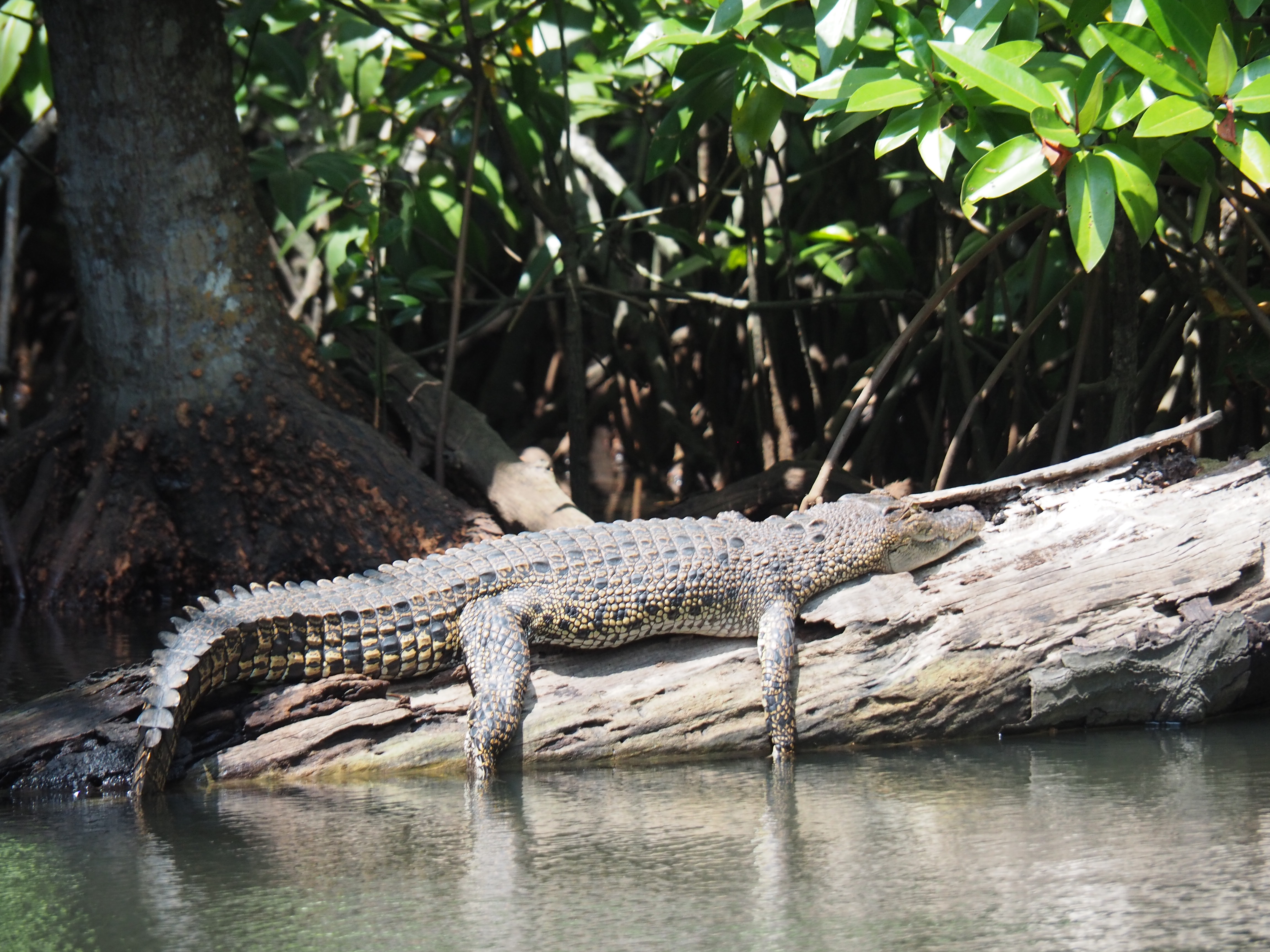 Godzinna podróż łódką motorową, to ostatnie nasze safari wodne na Cejlonie. Godzinna podróż wzdłuż malowniczej lagunki sąsiadującej niemal z uroczą plażą. Poczuliśmy przez moment, jakbyśmy przemierzali dorzecze Amazonii. Nasz opiekun, co chwila tropił jakieś nowe zwierzątko. Pokazywał nam krokodyle drzemiące na pniach drzew, cudownie kolorowe ptaki, czy choćby warany. Dookoła laguny wytworne wille i hotelowce, ukryte w gęstych zaroślach. Byłoby jeszcze piękniej i bardziej zachwycająco, gdyby nie tu i ówdzie śmieciowiska z tychże przybytków. Patrząc na wille gdzieś na uboczy, przy tejże lagunie, można zrozumieć skąd pomysł zamożnych europejczyków, by właśnie tu zaszyć się na drugą część swojego życia.
