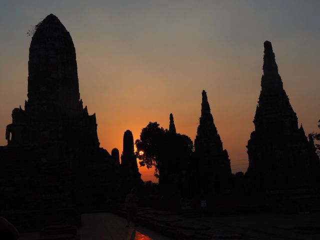 Ostatnim cudownym miejscem, które odwiedziliśmy była świątynia zachodzącego słońca Wat Hai Wattanaram. W niej, przy dwóch trzynastowiecznych posągach Buddy pożegnaliśmy się z pięknymi świątyniami. Widok –niebiański. Garstka turystów, może nie tyle wyznawców Buddy, ale po prostu piękna siedziała w ciszy i skupieniu. Wymarzone zakończenie dnia. Potem jeszcze kolacja – spora i smaczna. Po tajsku. Zupa, którą zamówiliśmy nie mogła być „średnio ostra”, jak to na ogół proponuje się turystom. Po prostu – ostra lub nie ostra. Wybraliśmy … na ostro. Potem zwiedziliśmy tutejsze Tesco, uderzająco podobne do naszych (choć miniaturowe). Maleńkie zakupy, przed pakowaniem.